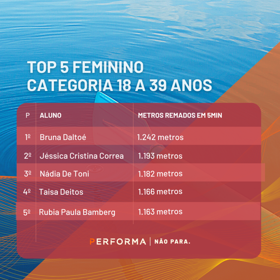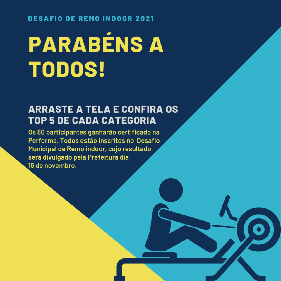 Nosso Desafio de Remo Indoor 2021, com 80 participantes, chegou ao fim e já temos os top 5 de cada categoria.