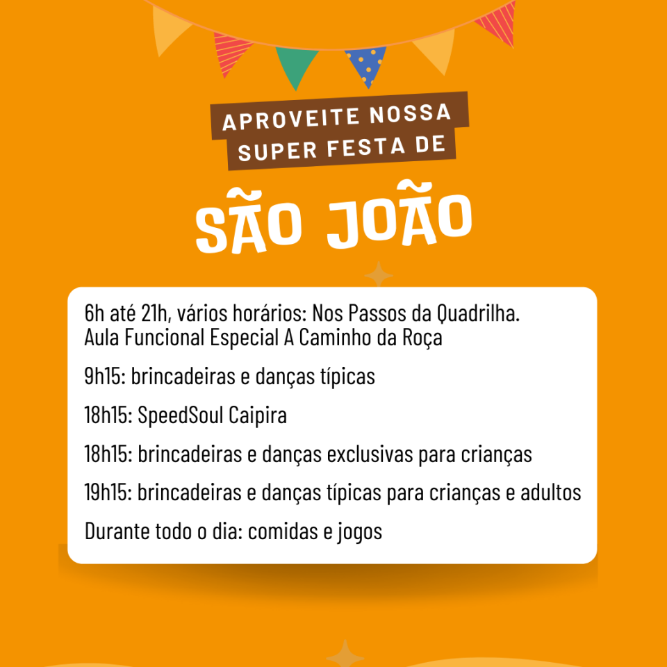 Participe da programação da nossa festa junina que será na quarta-feira, 22 de junho