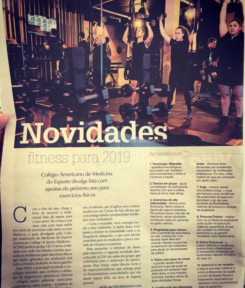 Somos destaque no Almanaque do Pioneiro deste final de semana em reportagem sobre as tendências fitness para 2019.