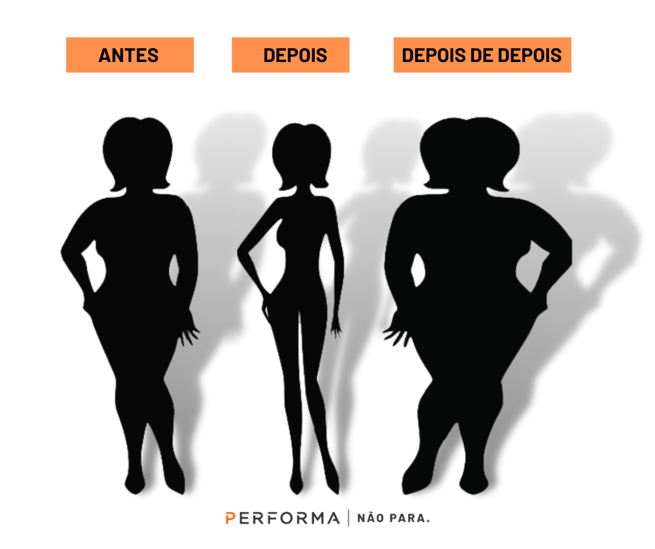 Com o metabolismo mais lento, e calorias voltando a ser ingeridas em excesso, rapidamente mais gordura é convertida e armazenada no corpo.